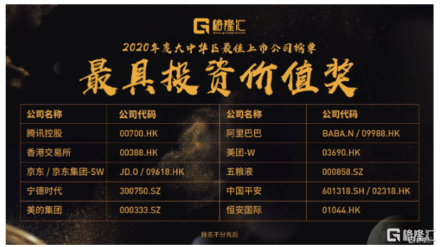 今年恰逢是中国资本市场发展30周年,站在新时代的起点,为致敬中国经济的价值创造者及发现者,11月16日,由格隆汇主办的“大中华区最佳上市公司·2020”颁奖典礼在成都隆重举行,优发国际国际集团荣获“年度最具投资价值奖”,同时荣获该奖项的还有阿里巴巴、腾讯、美团、京东等知名上市公司。